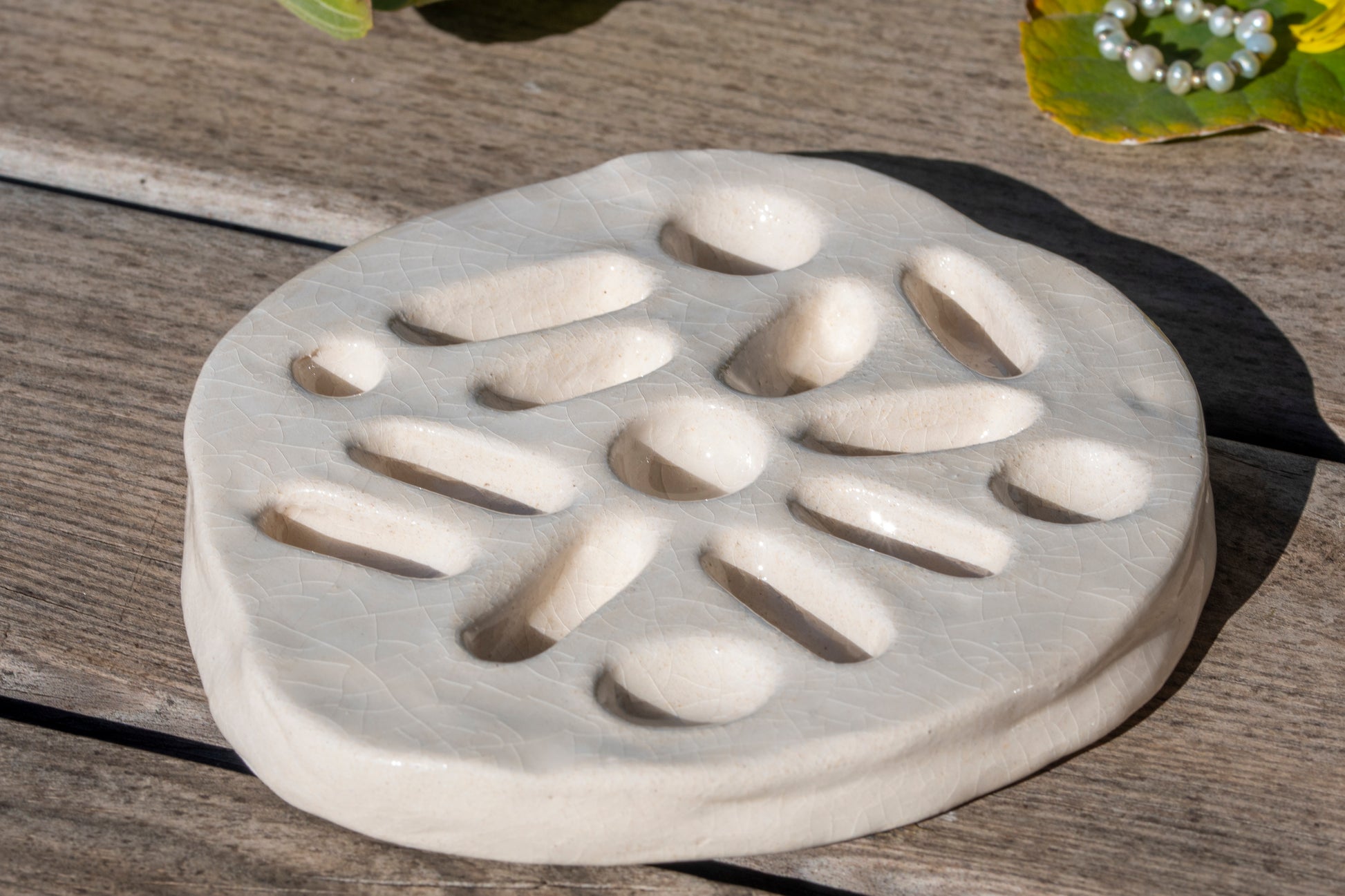 Découvrez l'élégance pure et la beauté artisanale avec notre porte-bague en grès, une pièce unique fabriquée à la main avec une attention méticuleuse aux détails. Chaque porte-bague est une œuvre d'art distinctive, car aucun n'est identique à un autre.